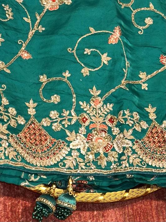 Aqua Luxe Satin Crepe Saree with Heavy Zardozi Embroidery
